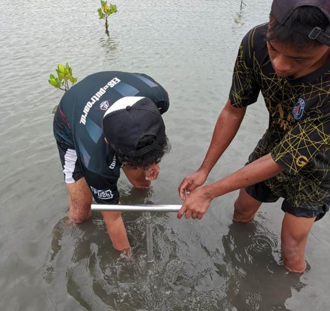 Pengambilan sampel sedimen dibagi berdasarkan kondisi lokasi yang ada, mulai dari area tambak, kerapatan hutan mangrove yang sedang, hingga kerapatan yang tinggi. Pengambilan data di dalam hutan mangrove menjadi tantangan tersendiri karena kondisi vegetasi yang padat dan akses yang sempit. Namun, kegiatan ini menjadi pengalaman yang berharga dan menambah pengetahuan baru bagi Kelompok Kabete Bajo.