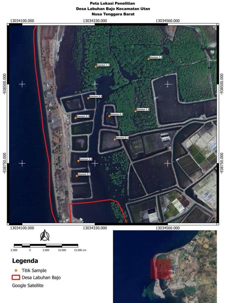 Untuk mengetahui besarnya cadangan karbon tersebut, Penjaga Pulau melakukan penelitian untuk mengetahui besaran cadangan karbon di Desa Labuhan Bajo, Kabupaten Sumbawa, Provinsi Nusa Tenggara Barat (Gambar 1) berkoordinasi dengan Kelompok Kabete Bajo. Di kawasan ini, sampel sedimen diambil pada beberapa titik yang masih berada dalam ekosistem mangrove dengan kondisi tutupan yang bervariasi.